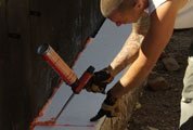Another Green feature of the foundation is that it is waterproofed with Ecobase instead of the traditional black tar based material. It is a more environmentally friendly way to water proof the foundation. We even put it on top of the foundation, and along with “ecoseal”, which is a polymer based gasket, allowing us to replace the traditional practice of using the thin blue “bubble wrap” called sillseal and the treated lumber. This allowed us to created a more airtight and durable seal between the foundation and the SIP panels, and saved money as well.