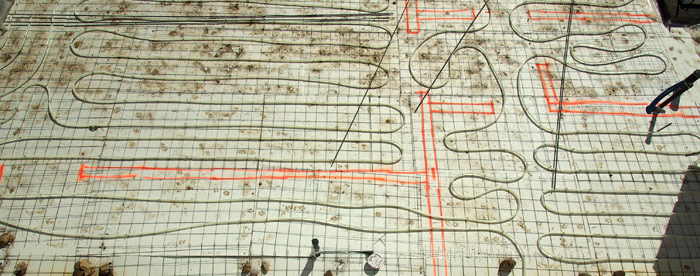Finally, the last unusual feature of the base of house was the 8 inches of EPS (R32) that was placed on the ground before pouring the basement cement floor. Typical practice is to pour the concrete directly onto the gravel underneath, even if radiant floor heating is used. The temperature of the soil beneath a house is about 55 degrees, while the temperature inside a house is commonly 70-72 degrees. If you radiant heating in your floors, like we have, the fluid is typically heated to 80-85 degrees. The laws of thermodynamics tell us that more of the heat will be “sucked” up by the ground than the air inside the house because of the larger temperature difference. Therefore by placing the EPS underneath our heated basement floor we can greatly reduce our heating load.